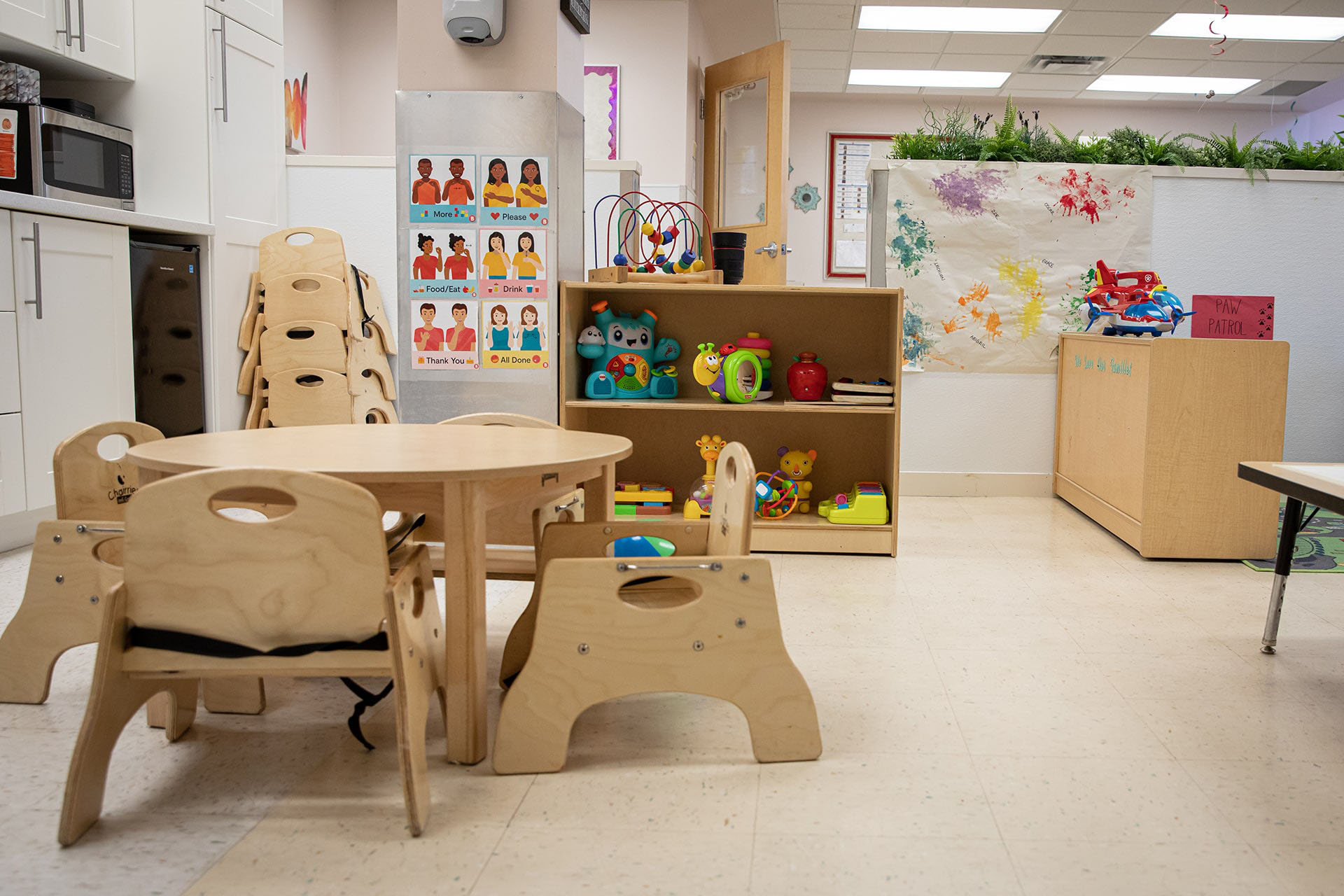 The physical environment for infants & toddlers provides a calm, warm, inviting atmosphere.